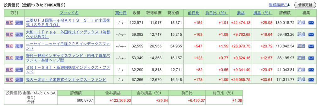 投資 資産形成投資積み立てNISAインデックス投資看護師の投資無理のない投資 【積み立てNISA編】ゼロから始めるインデックス投資(開始から1年半) 2021年4月3日 2021年4月3日 35秒 fiofios Facebook Twitter はてブ 積み立てNISAを利用して、利益に対する税金がかからない最大額40万円/年 ≒ 3,300円/月をインデックス投資に回しています。この投資を始めて約1年半が経過したので、その成果を紹介します。 この金額であれば無理なく投資を続けることができるため、参考にできる方は多いと思います。 評価額(積み立てNISAで所持している株の総計) 600,876円 含み損益(いくら儲かったか)+123,368円(25.84%) 関連 Facebook Twitter はてブ